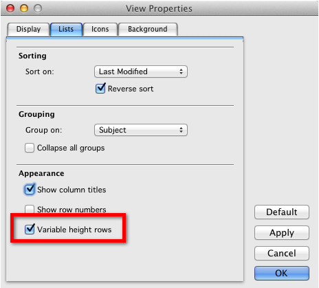 - Adjust the columns so that the Preview column is positioned after the Subject field