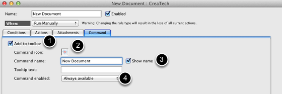 - Enter New Document as the command name and check Show name