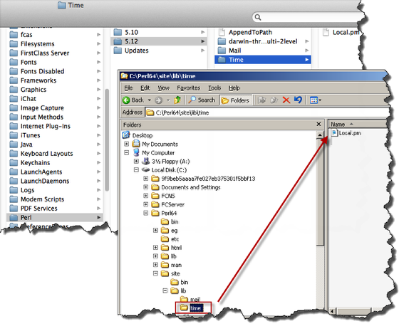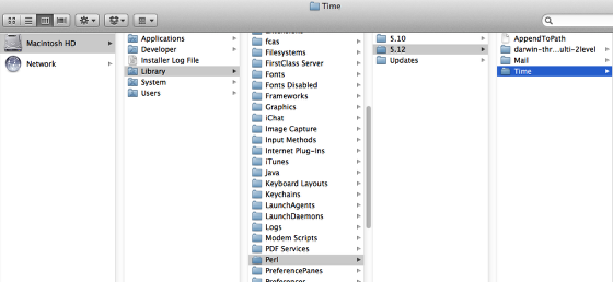 Inside your /Library/Perl folder on your Macintosh, you will find one or more folders, named 5.xx In the most recent version, create a folder called Time.
