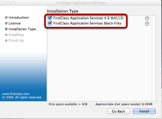 This section describes how you can install FCAS on a Macintosh computer. FCAS can be installed on the same server as your FirstClass Server and network store, or it can be installed on a separate computer. If installed on a separate computer, it will require two steps.