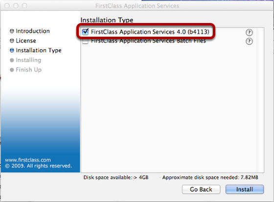 FCAS acts as a Gateway to your FirstClass server. If you are going to be installing it on a separate computer from your FirstClass Server, you need to complete the installation in two parts. First, you would complete the previous step, but this time only choose the first checkbox.