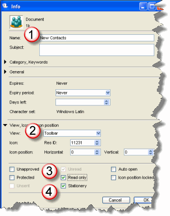 If you only want certain people to be able to use the New Contacts stationery, you can HIDE it from others by Right-Clicking the toolbar stationery and choosing Properties to bring up the properties window again. Now, set it as unapproved