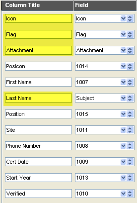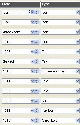 columns. This includes such things as the Message (or document) Icon, the Last Modified Date, the flag, attachment icon etc. For the remaining fields, you enter the Field ID number of the corresponding custom field.