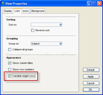 In addition, you might also want to set the view properties for the list view of your conference to use Variable Height Rows. That way, the message text will wrap and show multiple lines.