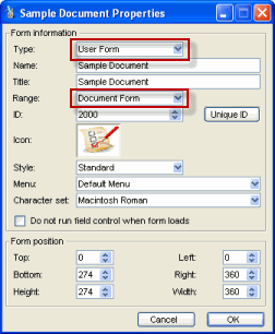 Forms that can't be addressed. User Forms that are created in this category are displayed in the File > New Document > New Document Special menu. |